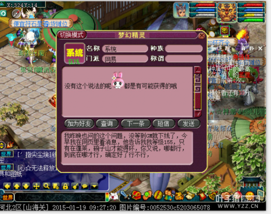 这GM简直。。。啥都不懂,你上你也行 我155带172的封妖,昨晚2小时,麒麟杯具丸子蓬莱,悲剧麒麟封得多, 50个妖毛都没有,我顿时觉得是不是不会再麒麟杯具得环,于是我咨询了一下GM,没等到回复就下线了,早上起来得到消息如图 然后我又有一个问题,那我在蓬莱丸子封,是不是带的172的不会获得环,因为这么说的话,172的应该在柳林比丘才给,于是我又咨询了一下,相同的问题,不同的回答。她告诉我哪都行,我让他确认好了,于是滚去问技术人员了。草草草草草,这GM我也会当,不懂的就去问,你上你也行