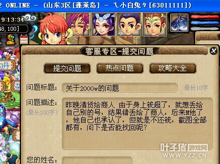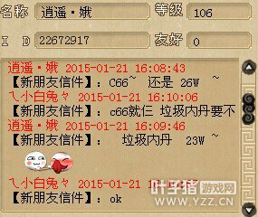 楼主清理完东西后,打算出去买点东西,可因为身上现金超了,所以想扔一部分给自己的号存 着,着急出门,点开好友就选了给予,忘记最后一个聊天对象是这个商人,所以顺手就丢给了他2000w。。粗心的楼主也没注意到,就离开家了,半小时后回 来。才发现另一个号身上也没钱,翻了下系统的记录,才发现是错给了他。。楼主怀着忐忑的心情又M了他。。。