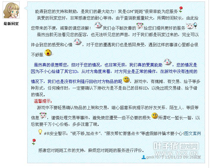这是GM的答复,看来这个哑巴亏我吃定了。。。