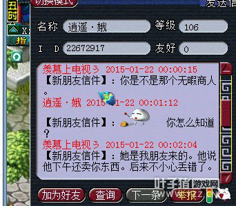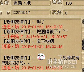 其实我和他直接的谈话就到此为止了。。他不再回话,我也就明白他心里是怎么个意思了,只是觉得稍有遗憾。因为不是第一次和他交易,而且他收的价格比旁 边商人还要低一万,只是觉得大家赚钱都不容易,少一万也无所谓啦,这事情还有点儿后续,并且连他的QQ都被找了出来。。。