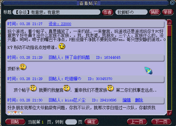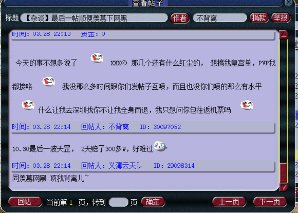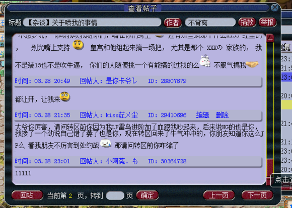 这货转区前一晚跟我讨论我的雷鸟,说我的雷鸟因为进阶加了血废了,本来是1800血 1000G的,进阶5个后 被我加到了2500血 1000G。。还没进阶满 它转区前晚就说我这BB废了,应该加G的,而我认为加血也可以,满3000血1000G 也有好处,它却说我加点错了,应该加G废了,我就跟它吵着,最后这货说约我HG,HG直接搞起好么,我那晚也想打,就说,来吧,结果这货就缩了,一个劲跟我说错了,它还不想出名,我问了两三遍要来就来吧,你是FC,给你门派克制还怎么样,结果它一个劲认错,说不打#83 这是LZ,那晚带的也是这身装备,我连腰带都发给它看了,结果它一个劲说错了不打还不行吗。。。 LZ真是无语了,约HG的是你,一个劲说错的也是你,当时就说,你转区是要去搞什么厉害的装备还是BB吧,要打现在打,等你回来我号都清了,想打也不跟你打了,因为那晚没把这事放身上,所有没图片,不过LZ说的句句属实 LZ我只是一个普通玩家,不喜欢挑事做,而且最近工作忙了,打算清号,真心想玩 这些肯定都换JP了