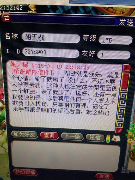 这个是副帮主 以前开145天天带我玩 护法就是他给我的