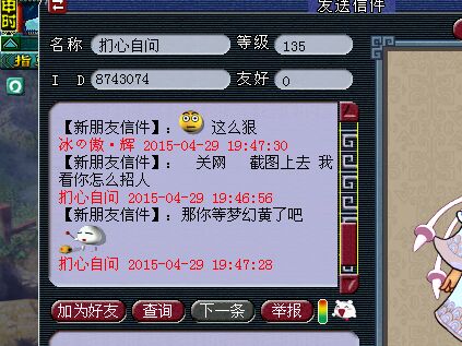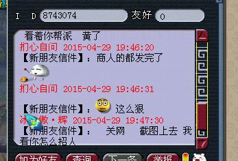 我是天津卫的,这回没来的及截图,本屌没实力杀他,请各位帮我一把,1169363723,杀一次,找我拿钱,长期有效,就为了出口气,妈的。