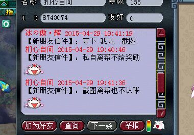 遇到这种帮主怎么办? 事情这样的,一开始副帮主喊招青龙人员,我进去了。说奖励每轮6W ,之后我跑完帮主不认。说青龙只给5W。我说行反正也跑这么多了,大不了奖励给我我走人。之后说星期二发奖励,不发我的。我找他 这是我刷的青龙。