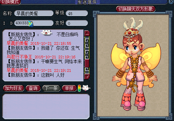 相关文章:梦幻最愤怒的门派无底洞:被策划横捅两刀 今天晚上,我跟她,到底是谁疯了。。。。。。裁判呢 猪友们来看看 到底是谁疯了 起因是我发的一个传音 原来的 传音记录找不到了 原话是这样