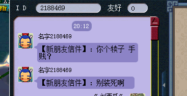 小号惹怒服战大爷!是道德的沦丧还是不怀好意的玩笑? 事情是介样的: 楼主今晚在老区玩了组号,想刷环给自己大号用,升到20级的时候由于太多低级专用,5个号,一件一件扔的话又嫌麻烦...碰巧有个大爷经过..... 大爷智商也不是零的!你以为就好欺负?