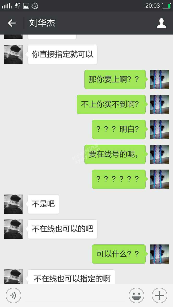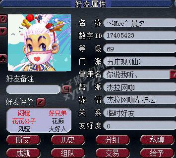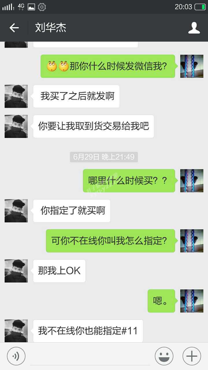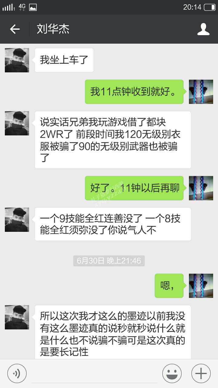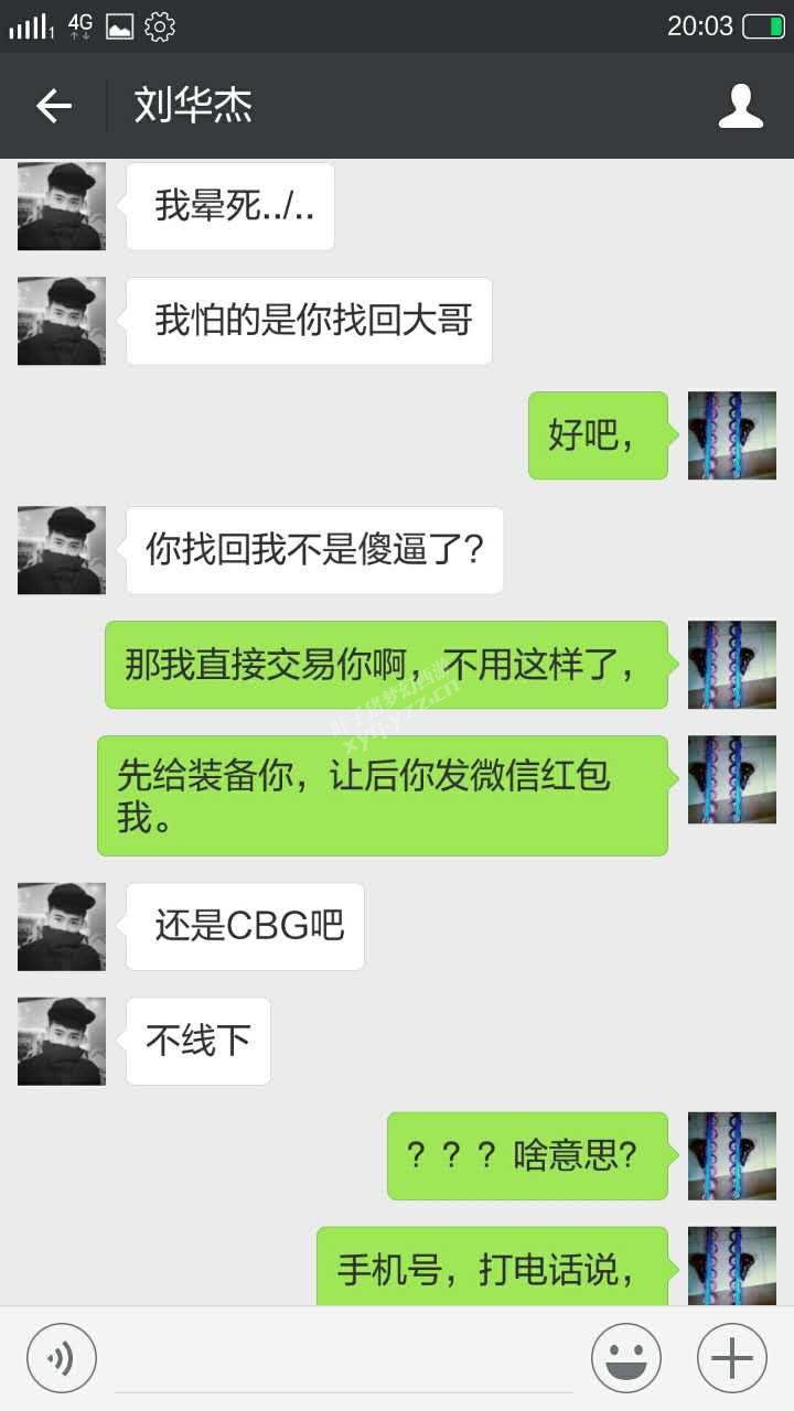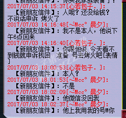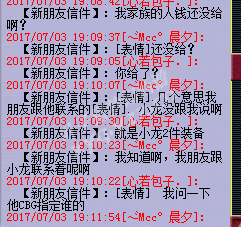 好可怕好可怕 他是怎么办到的 为什么他前言不搭后语 为什么他可以一下字是他朋友又是他本人 请观看以下截图 他竟然说我们59家族欺负他 要我皇宫 好气啊。我打不过69的怎么办 还说我威胁他媳妇。。流弊啊 这是分饰了几个人格啊 就是我家族有个人蠢萌的 被人骗线下 CBG指定 2件装备 50一件 然后微信补差价 呵呵还被拖3天 被拉黑