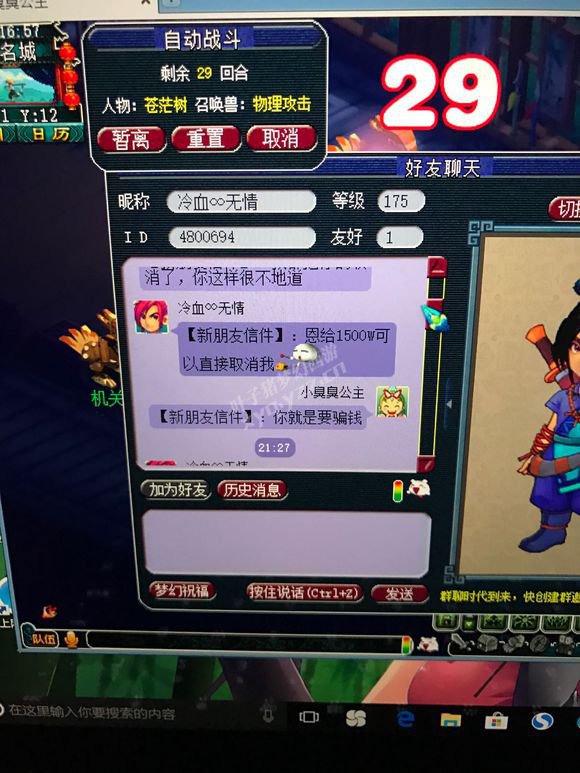 梦幻西游这个帮主向妹子勒索1500W 不给就不关敌对