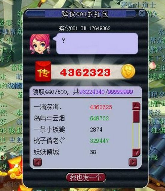 没有争执的游戏只可能是单机版,或者游戏已经走向灭亡。梦幻就不用说了,去年的30万皇宫都惊动官方了。打不了皇宫的神豪们发生了争执怎么解决?刷传音?比谁数字多?10年前玩劲舞团的时候玩过,在这么玩就感觉很弱智。今天这俩神豪老板真是让碗涨见识了。 兄弟们,如果区里有争执,传音挑衅另外一个人比谁传音发的多,你会觉得他是神豪吗?我感觉这有点弱智,几块钱的传音谁还刷不起了?发出的传音就是1.2.3.4.5这样的数字一点意思没有不说,还影响其他玩家的游戏体验。我觉得梦幻应该改一改,每天的传音数量有所控制,想要无限发,那就发红包 要说古代君王打仗,讲究一手天时地利人和,没有名义这仗没法打。洞庭湖的两位玩家打嘴炮全区没有一个人反感,不嘻嘻哈哈就是发红包。你说会有人发传音嘲讽两位神豪吗?我觉得没有,一次红包就是一个亿啊。 不好意思,就是这么任性。 这位老哥手慢都没抢到。。手气最佳的3000多万。。这算不算牟利 怎么样,这比刷1.2.3传音爽多了吧。神豪既装了满分的*,又不影响区内玩家游戏体验,做做师门抢抢红包,这游戏体验还有哪个网游能比??想去洞庭湖。。 主人公:? 连续发俩红包,两个亿。这个叫帝君的抢了6000多万。。。把他扔进去烤火吧。黑暗。 洞庭湖应该不是新区吧,怎么神豪老板的名字跟闹着玩是的呢。 这位老哥终于抢到了一个大包。。 有网友评论,这才是壕。那些自以为刷几十个传音不打架还以为自己很壕的都烦死了,一点人心没得到还没达到装*的效果。。 [编辑:夏大雨]