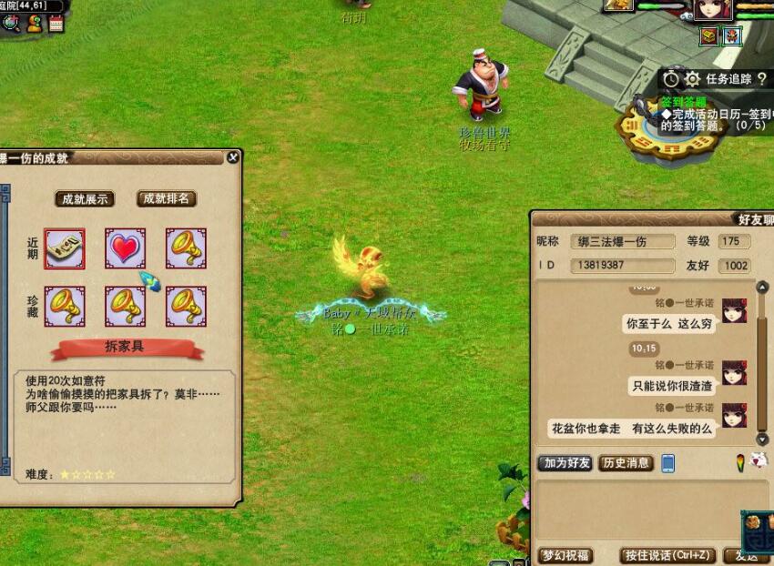 我在罗浮山,游戏里角色跟另外一个人结婚了,这次大改他走了,也就一天没上,我也不经常上号,知道后就申请强制离婚了,强制离婚需要三天…就一天!他的号低价卖了! 然后…新买号的把我家里洗的干干净净…看图吧,申请过两次,打客服好几次,东西不值钱,就是感觉恶心!!!!是真的恶心!!!! 25的人了,干嘛不好啊,每个月给它投资,我不牟利,只想没事玩玩游戏,这也能恶心到我!!! 希望这个设定改了,比如自己加了锁的东西不能拿走啊。 真的是服了,你看他的成就,直接把所有家具拆走,连花盆都没放过! 跟GM举报有用吗?能不能抓他去烤火? 叶子猪梦幻西游玩家群:1群 325703083 (2000人),2群: 330102322 (千人);3群: 424986787 (游戏疑难解答);4群: 330518295 (商人物价);5群: 1063086037 (疑难解答);6群: 1045753197 (春心萌动);7群: 787195090 (活跃互动);8群: 720665628 (全民PK) [编辑:夏大雨]