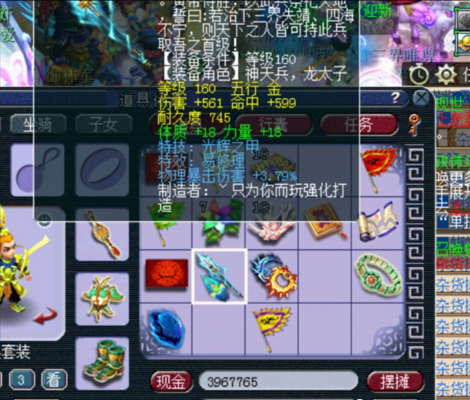 前天新出的140专用高伤武器,体魔双加...物理系和法系用哪个更值钱? 老哥出了两把武器,都是那种远看保时捷近看奥拓的武器...蓝字比较能唬人,但不得不说双环能稍微值点钱 这个是什么东西,游戏内推出这种幽小胖表情包系统了吗 ![]() 游戏截图 80级灵饰崩成这样了吗?这是价格打错了吧 ![]() 游戏截图 梦幻还是有新玩家的 ,看了之后想笑又心疼 ![]() 游戏截图 他们不是说来大秒须弥吗,我有须弥啊,是个大秒... ![]() 游戏截图 9年牢狱生涯,出来时已物是人非 ![]() 游戏截图 据说100级愤怒特技腰带现在很值钱?那这个能卖多少... ![]() 游戏截图 叶子猪梦幻西游玩家群:1群 325703083 (2000人),2群: 330102322 (千人);3群: 424986787 (游戏疑难解答);4群: 330518295 (商人物价);5群: 1063086037 (疑难解答);6群: 1045753197 (春心萌动);7群: 787195090 (活跃互动);8群: 720665628 (全民PK) [编辑:小麦]