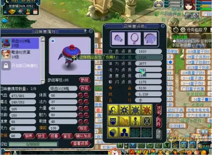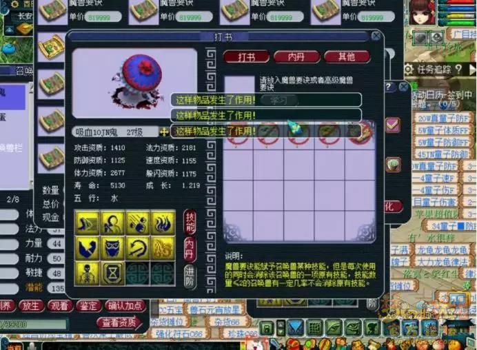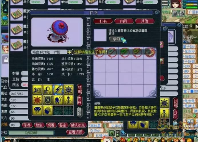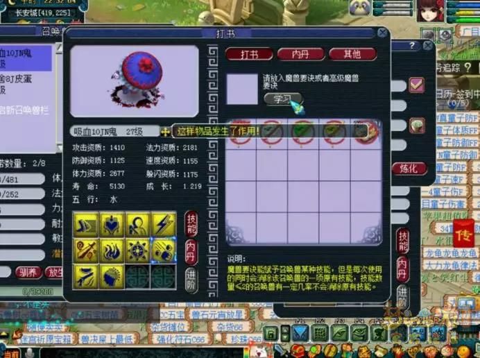 如果你拥有一只8技能的凝光炼彩胚子,你还会选择回炉么?应该很少玩家会选择去回炉吧,要么卖掉,要么打书自己用。今天这位玩家特立独行,8技能的凝光炼彩拿来回炉,就为了去冲击翻页! ![]() 游戏截图 首先,一起来看看今天的主角吧~ ![]() 游戏截图 这是今天的另外一个主角,10技能的吸血鬼。虽然技能格子不少,但是没有任何的特殊技能,就是因为这样,所以玩家才拿来回炉。 ![]() 游戏截图 首先,开始给吸血鬼打书,把吸血鬼的必带技能打掉,还要把和童子重复的技能也打掉,工程有点大。10本兽诀打下去之后,3个必带技能还有2个,果然不轻松。 ![]() 游戏截图 又打了5本,小鬼魂与弱点水纹丝不动,和童子重复的偷袭也没掉。 ![]() 游戏截图 再顶几本,弱点水终于掉了,还剩2个技能了。