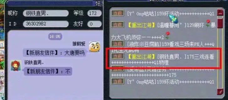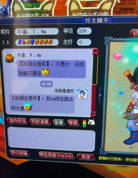 在游戏里面,大唐官府一直是一个很有争议的门派,早期的时候很长一段时间里面都是大唐一家独大,然而随着全民五开,全民多秒开启之后,大唐作为一个点杀型的物理输出再次被推向了风头浪尖,组队被各种嫌弃,大唐玩家只能靠打图来维持生计,之后玩家们更是给大唐安上了一个“打图唐”的名号,从此大唐便开始沉沦了。最近一玩家欲给大唐正名,组队只组大唐,其他门派统统不要,一起来看看到底是怎么回事吧。 ...... Q1物理不要大唐 在游戏里面大唐组队有多难,相信如今玩家们都是深有体会的,首先队长在当前喊Q1物理,然而大唐作为物理点杀门派队长却一直不加,于是直接加好友问他大唐要吗?对方只打了一个“不”字,连多打一个字都不想。 ...... 给钱都不肯带 ![]() 还有一位大唐玩家在组队的时候似乎遇到了一名好心玩家,他说给队长10W让带他玩,好心的队长直接不收费用,原因是该玩家以前经常带他。 ![]() 就在该玩家庆幸找到队伍的时候,这名队长再次发话了,他说朋友不让要他,我想原因就是因为该玩家是一个大唐吧? ...... 无奈大唐咨询在线GM ![]() 对于各种无人组的情况,有大唐玩家在线跟GM咨询,为什么会出现这种情况,GM却说如果没人组,那尝试自己带队试试,特别是捉鬼自己带队还有物品奖励,虽然说的很有道理,但是大唐的痛苦有谁能懂呢? ...... 大唐自力更生 ![]() 当然了,并非每一位大唐玩家都是如此悲观的,也有很多大唐玩家开启了自力更生模式,组队只要大唐,其他门派统统不要,既然你们其实我们,那么我们也不会跟你们玩。 ![]() 一玩家组队时直接给队长发了一只全红须弥,119级1000灵力,一般有这种宝宝的玩家属性也不会太差,然而这队长直接回复了一句“不是DT,不要”。 ![]() 该玩家为大唐正名,组队只组大唐,不是DT无级别都不要你,可见平时混队的时候受了多少的白眼。其实玩游戏就应该这样,有人带很好,没人带就自己玩,实在不行就五开,完全没有必要求讨好别人,大家觉得呢? 叶子猪梦幻西游玩家群:1群 325703083 (2000人),2群: 330102322 (千人);3群: 424986787 (游戏疑难解答);4群: 330518295 (商人物价);5群: 1063086037 (疑难解答);6群: 1045753197 (春心萌动);7群: 787195090 (活跃互动);8群: 720665628 (全民PK) [编辑:小麦]