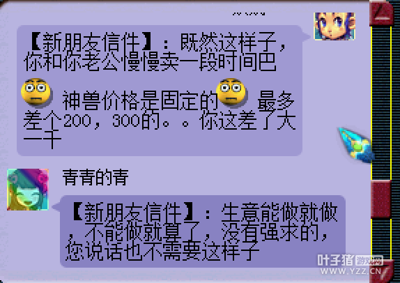 事情起因就是楼主最近在收宝宝,做任务想方便,我就想着买一个神兽用好了,看到群里有大爷卖超级兔子,我就传音喊了一下,结果卖主不在。卖主老婆在就发生了下面对话: [编辑:小麦]