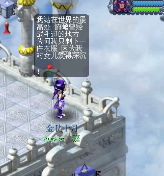 在这场血雨腥风的战争中! 楼主用生命一次次捍卫了女儿村人不屈的尊严与人格! 侵略者们无情地脱去了楼主的鞋子 掠夺了楼主的武器 扯掉了楼主的项链 把楼主的定情帽子给撕裂了。 甚至他们还想脱了楼主的衣服 楼主怎能答应这帮禽兽不如的侵略者 最终 楼主还是在护住衣服的前提下 成功地驱逐了两队侵略者 但楼主也因此战死3次 血的教训证明 只要能坚持 侵略者总会被打败!