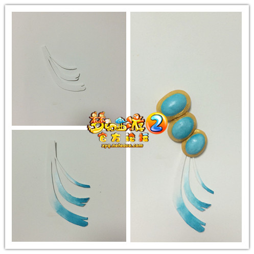 更多精彩:梦幻那些明星脸完整版 我已傻傻分不清楚 梦幻西游2的成就宝盒中, 漂亮的饰品是许多妹子们得最爱! 刷出各种萌萌的饰品佩戴起来成就秀看起来美美哒! 这期为大家带来DIY的成就饰品制作合集! 让我们一起开始吧! 【羽毛眼罩】 首先,在pvc/EVA板材上用笔画出轮廓,并裁剪出来。 需要注意面具的大小要适宜。 剪裁好后,调制颜料,淡紫色的渐变需要配置白色颜料。 先绘制底层的淡紫色渐变,左右上角要略重涂色。 绘制面具的边框要格外注意粗细哦! 弯曲的勾边要用小号细笔沾较深的蓝色颜料来完成,来加强视觉效果。 当绘制好的四角花与面具等完全干后用热熔胶粘合在一起,并与羽毛一同粘在面具右上方。 这样带有神秘舞会气息的羽毛眼罩做好了! 【青蛙发箍】 首先剪裁出4个直径6厘米绿色圆形,2个直径5.5厘米白色圆形。 2个直径4.5厘米黑色圆形,2个约直径1.5厘米的白色圆形。 2个直径0.5厘米白色圆形和2个灰色椭圆形。再剪出一块绿色长方形。 然后,在黑色圆形的不织布上剪开三角形的口,按照上图,把剪裁好的不织布用热熔胶粘合。 需要注意的是在缝制2片绿色圆形时,要记得留小口塞棉花,再缝合好。 把缝制好的绿色圆形与眼睛粘合在一起,便做好萌萌的青蛙眼睛了! 长方形的布条要围绕发箍缝制,最后与制作好的眼睛部位一起粘合在发箍两端。 【孔雀羽毛发饰】 【所需材料】:1.树脂(裸色) 2.白色羽毛三支 3.丙烯颜料(湖蓝,白色,金色) 4.pvc/Eva板材 5.热熔胶,剪刀 把树脂捏成椭圆形,并捏出上面突出的部位,以增强立体感。 等树脂完全干后进行上色,需要注意的是颜色的分层。 底层涂上蓝色后再用白色渲染开,形成渐变效果,然后在周围涂上金色颜料,反复涂两层,要涂匀! 白色高光地方需要与周围的渐变融合在一起,形成宝石一样的效果~! 再不织布上剪裁出3个椭圆形,以及Y字形状。 注意与上边圆形要吻合哦!然后与羽毛分别粘合在一起! 在pvc/eva板材上剪裁出所绘形状,并同样使用渐变的上色方式进行描绘。 把分别做好的零件用热熔胶粘合起来,注意羽毛的位置哦~! 【魔翅发箍】 首先在不织布上剪裁出恶魔形状的翅膀,需要4个,2个圆形以及长方形布块。 首先在不织布上剪裁出恶魔形状的翅膀,需要4个,2个圆形以及长方形布块。 缝制恶魔翅膀以及圆形时,需要注意留小口塞棉花! 恶魔翅膀的纹理部位要缝制的密集一些,会更有立体感哦。 长方形布块需要缠绕发箍缝制,加少许棉花,最后与小部件缝合在一起! 【心形发箍】 首先需要剪出10个心形,大小按依次小0.5厘米即可。 再剪裁16个直径1厘米圆形,18个直径0.7厘米圆形,6个0.5厘米圆形。 以及不规则的5个淡蓝色小爱心,需要注意的是左右边形状不一,剪裁是需要特别注意~! 缝制心形时塞的棉花不易过多哦~! 最后把小部件与缝制链接好的发箍用热熔胶粘合在一起! 需要注意的是每个小圆行的位置,先粘不规则蓝色爱心,后粘黄色和白色圆形~! 这期五款成就饰品希望大家喜欢~! 盆友们~!快动手制作起来~!男生学起来送妹子哦~!