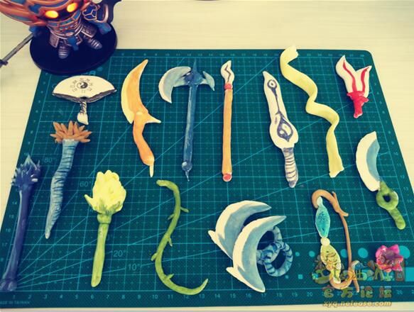 某天突然有了想做十八般兵器的想法,现在正好梦幻里也有了十八种武器。 楼主花了一天的时间,弄出了黏土版的简易梦幻武器。 希望大家喜欢。