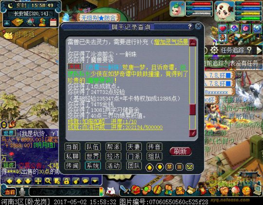 【时间】2017年05月03日 【作者】李永生 【摘要】建邺城巡逻队派至长安城的角色,89天宫巡逻队队长,炼金术已经学满。 【内容】昨天下午,来自河南3区卧龙岗的89级天宫巡逻队队长,正在努力跑商,提升生活技能。 |