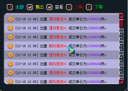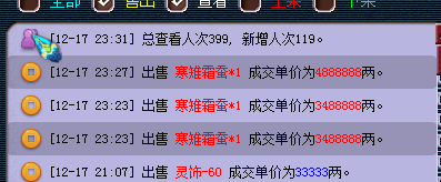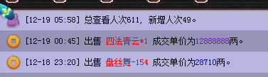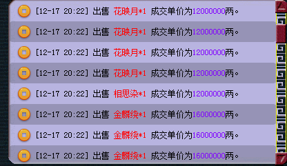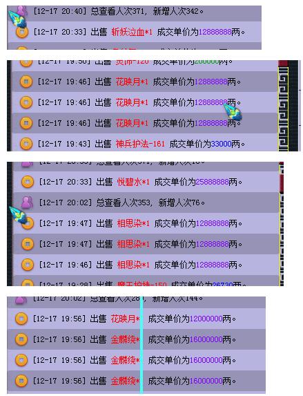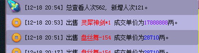 2017年12月18日就要结束了 今天的纯利润去掉点卡 (10个号 24小时摆摊 24*6*10=1440点 按本区点卡比例12500-12800左右) 纯利润也就是1200W-1400W左右 新的一天开始了 维护完 楼主刚刚登上号 今天凌晨卖了个120的剑 今天继续 楼主是2006年上学的时候开始玩梦幻的~ 最早的是山东三区 青云山 后来山东一区 青岛湾 再后来山东一区 东岳泰山 (一直到至今) 中间陆陆续续玩过几个新区 也玩过几个老区 最后还是回去东岳了 我选择东岳泰山的理由很简单 我家就是在山东泰安的 云天宫这个区有很多朋友都问我,为什么选择这个鬼区,投资6W左右完全可以去一个火区 我想说的是,不是我选择云天宫,而是我想买个打造号,恰巧这号的原主人要卖号 这个号在这个区算个小名打 如果转区的话 就没有知名度了 当时买号的时候是先交了3000的定金 然后CBG买了5个号 剩下的5个号都是线下 (原主人将军令绑定不到75天不能上CBG) 包括2万多的货也是线下买的 反正过程很曲折 折腾了6个小时才把东西全部都搞定 梦幻这款游戏伴随了十年的了 真的是一梦十年 不知道梦幻开了这么多年 真真正正算的上名打的都有谁 比较知名的 宝儿挂帅 吴四宝 还有谁 那种000某某000 就不要说了 还有画晚 也不要说了 这种都是冒充的 我说的名打 没有人冒充 只在一个区长期发展的 还有一个魔紫枫 大家说是不是呢