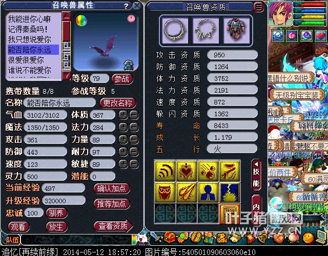 这个号真是投入了很多心血,现在是魔FC,有三套属性,辅助都快全满了,虽然舍不得但是还是要离开了。 装备卖的差不多了,就剩 一些宝宝。发帖留个纪念吧~