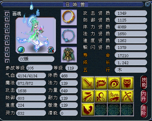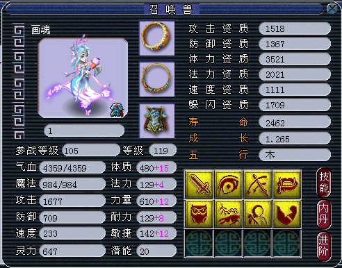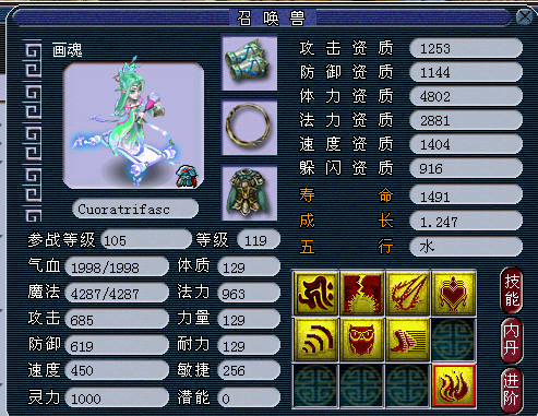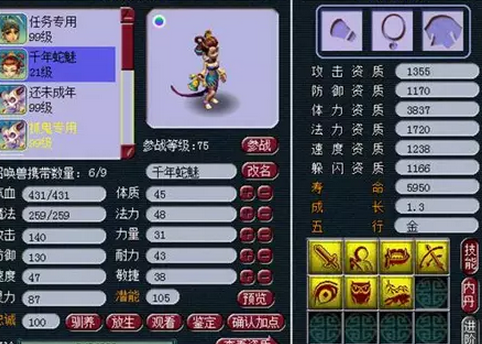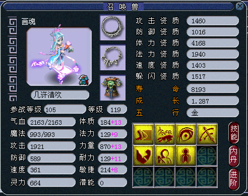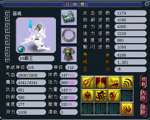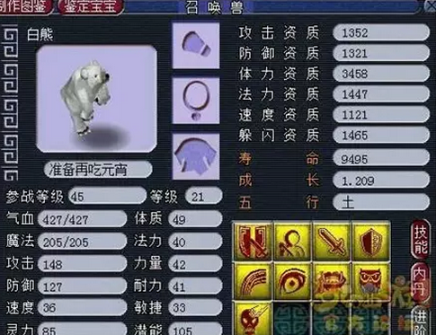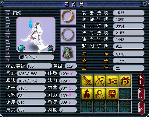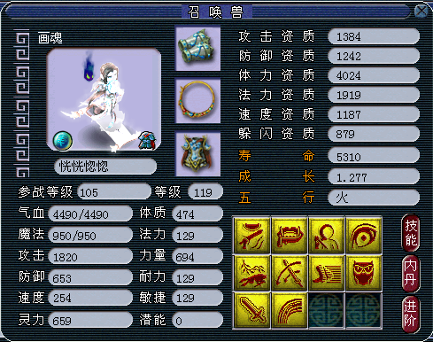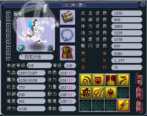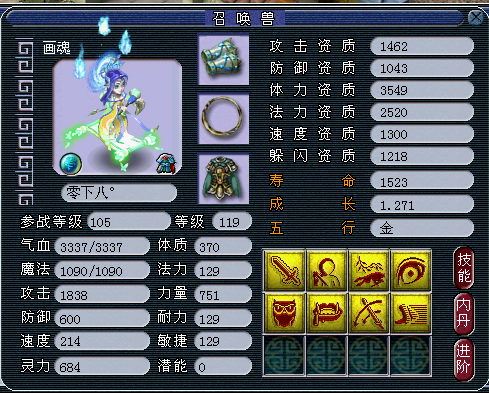 新出任性宠集结!童子竟带无畏布施和须弥(/16)相关图集: 玩的就是套路!奇葩的个性BB中有须弥大力(/16)![]() 9技能善恶鬼将:攻资1521,防资1062,体资4291,速资1292,成长1.198,综合资质很完美,成长有点过低,不过吃两年的炼兽珍经差不多可以提升上来了。它还没有打书,祝老板能打书成功,不过就算善恶掉了,这种9技能的鬼将也是值得上红书的! ![]() 7技能全红蛇魅:攻资1355,防资1170,体资3837,速资1238,成长1.3,整体资质虽然不是很出众,但它的成长和全红的技能非常霸道,试想带着这样一只全红蛇魅去押镖,有没有一种霸气侧漏的赶脚!(呸,全红的宝宝,小美第一反应居然是去押镖,一辈子的押镖命) ![]() 7技能须弥狼:攻资964,防资889,体资4034,法资3052,速资784,成长1.198,防资和速资虽然都比较低,但是3052的法资对于这样的生物(狼)而言已经是非常爆表的数据了,看它的技能,这高低魔心,高低法连,怎么有种莫名的喜感。