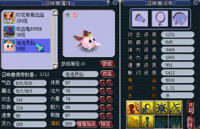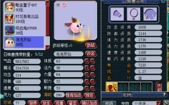 泡泡灵仙这个召唤兽,已经上线一段时间了!需要用泡泡祈福石与0级召唤兽炼妖,才会有几率获得!而泡泡祈福石的获得方式也很特别,那就是通过日常烧双杀怪!所以由此可以看出,想获得一只泡泡灵仙真的是不容易!在泡泡灵仙刚上线之初,第一位获得的玩家,甚至以十几万高价摆上藏宝阁!当然,最后成交价虽然与摆价,大相径庭,但是也不低! 泡泡灵仙目前只有4个种类,因为它漂亮的外形和超高的成长资质,还是受到很多玩家喜爱的!只可惜它的获得途径很难,所以这类资源我们也不是很常见!今天,浩仔有幸拿到了一组泡泡灵仙的炼妖资源,接下来整理出来让大家欣赏! 唯一可以无限回炉的召唤兽,连续10次回炉,直接把主播搞自闭了! ![]() 来来来,先介绍一下我们今天的主角,这是一只4技能泡泡灵仙,是飞燕女造型的,它的特殊技能是增加主人的封印命中率,相比其他3个种类,浩仔倒是觉得这是最实用的一个!但是它有一个致命的缺陷,那就是无法进阶,这就使得它天生比其他召唤兽少不少属性点,也因此很多人不愿意去搞它!而这个飞燕女造型的,很适合做血宠,所以属性点就没有攻宠那么至关重要了! ![]() 泡泡灵仙只能与变异召唤兽炼妖,这种设定还不错,对于游戏内过盛的变异宠,能起到一定的消耗!这里我们首先找了一只4技能变异童子回炉!因为泡泡灵仙炼妖很特殊,那就是回炉必出泡泡灵仙,所以它可以无限回炉,也是目前梦幻西游唯一一个可以这样玩的召唤兽! 既然必出泡泡灵仙,所以童子的连击神迹必带技能无需垫掉! ![]() 直接合出泡泡灵仙! ![]() 合出了3技能泡泡灵仙,而通过它的成长可以看出,它应该与胚子的成长没有什么关系,垃圾的成长,也能合出高成长! ![]() 继续秒了一只4技能吸血鬼回炉,目前合适的变异胚子,也就是吸血鬼和童子这些!毕竟必带多! ![]() 泡泡灵仙第二次回炉开始! ![]() 垃圾,又是一只3技能泡泡灵仙,特殊技能也是必带的,不用考虑成长资质,现在就要多技能! ![]() 再秒一只4技能吸血鬼继续,由于泡泡灵仙的上线,使得变异胚子的价格也有所上涨! 接下来的几次回炉,浩仔就不一一截回炉的界面了,直接上结果,有刺激的再上炼妖界面的图! ![]() 第三次回炉,玩来玩去还是一只3技能泡泡灵仙!这里再普及个知识,那就是经过测试,泡泡灵仙回炉的话,资质也并不是很重要,因为回出来资质好像是随机的,可能会爆很多,这个不固定! ![]() 第四次回炉,秒了一只5技能变异吸血鬼! ![]() 结果并没有让我们失望,这次终于合出了6技能的泡泡灵仙,到这里当然还没有结束,接下来继续! ![]() 找了一只资质,高成长的变异童子做副宠,虽然不怎么看资质,但是我们也要做到最好!因为我们要的是血宠泡泡灵仙,所以速度资质给它提了提! ![]() 这就是第5次的结果,意不意外惊不惊喜?当时看直播的我,差点笑喷了!啥都准备好了,就等爆炸多技能,如果不是特殊技能是必带,这不就是一个白板吗? ![]() 泡泡灵仙是可以顶书的,一本隐身顶到了2技能! ![]() 第二本再生直接到了3技能,还挺顺利的! ![]() 收拾心情重新出发,再来一只4技能变异童子! ![]() 第六次回炉,出了4技能泡泡灵仙! ![]() 向着多技能冲刺,第七次回炉又秒了一只5技能变异吸血鬼! ![]() 结果还算可以接受,又多了一个技能,目前最多技能好像就是8技能,要求不高来个8技能就可以! ![]() 高端回炉又来了,第八次秒了一只5技能变异童子,这成本也是不低的!这些高成长资质的变异宠,真的要多谢泡泡灵仙的出现,终于有了用武之地! ![]() 第八次回炉的结果,5技能泡泡灵仙,成长有点垃圾! ![]() 第九次回炉,5技能吸血鬼一只!回炉的时候,老王的一个比喻很贴切,玩泡泡灵仙炼妖的,一定家庭条件很好,这玩意买回来就是吃变异的,就得一直供着,运气不好真的要无限循环下去,不知道要吃多少变异胚子,有点貔貅的感觉了! ![]() 还好第9次回炉,又给了我们希望,6技能泡泡灵仙一只,离8技能只差两步之遥了! ![]() 接下来第10次回炉,老板想搞一组双特殊,找了一只4技能变异广目巡守来回炉,希望能把净台妙谛合上去! ![]() 6+4不多要,给我出8技能双特殊就可以,哪怕不要净台妙谛也可以! 66666,第10次回炉,3技能泡泡灵仙一只! 当时气得老王直喊“不玩了,不玩了!这能把人气自闭!” 确实,一只泡泡灵仙,经历10次连续回炉,成本对于老板来说可能并不是很高,但是却换来这种结局!这真的像是请来了一个老佛爷啊,无限拿变异给它吃! 好了,本次炼妖看累了也玩累了,你们对这泡泡灵仙什么看法呢? 叶子猪梦幻西游玩家群:1群 325703083 (2000人),2群: 330102322 (千人);3群: 424986787 (游戏疑难解答);4群: 330518295 (商人物价);5群: 1063086037 (疑难解答);6群: 1045753197 (春心萌动);7群: 787195090 (活跃互动);8群: 720665628 (全民PK)