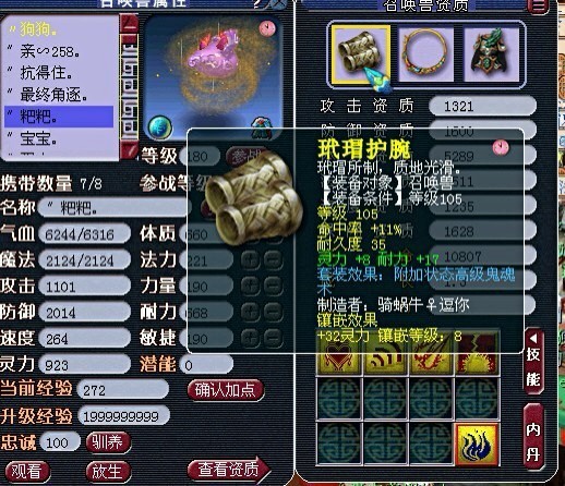 梦幻西游一名大唐玩家向我们展示了其硬件和软实力,宝石再上1-2锻上服战应该够格了,修炼技能神马的全满的,BB也光彩夺目。话说最近DT的硬件展示有点多啊,看来这个门派不是浪得虚名的。