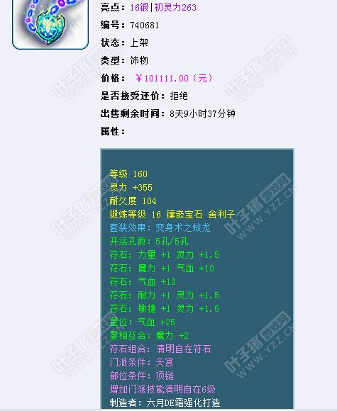牡丹亭资深裁缝论坛展示作品,蓝色的装备看着非常舒服,据说是藏宝阁16锻项链的缔造者,16锻下来355总灵,售价10W+,你怎看?