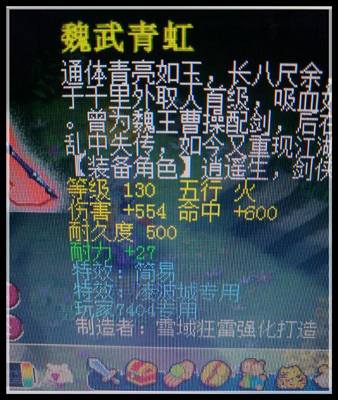 130级简易专用剑:初伤554,初命中600,单加耐力27点,特效简易!初伤爆了134点,初命中爆了112点,初总伤有754点,非常暴力,但是老板你的门派是凌波城,你准备好拿着这把剑去跟二郎神谈判了吗?