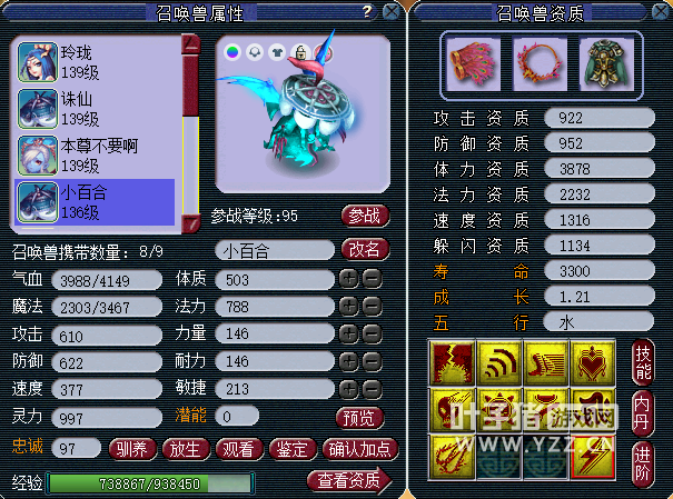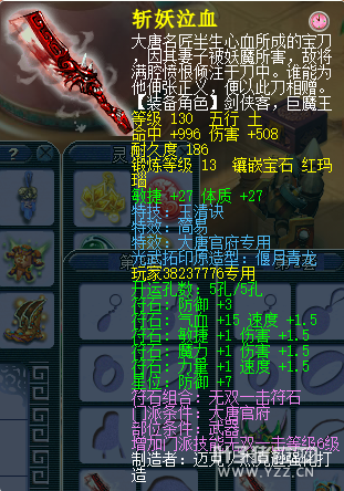 这才是129第一神器大唐啊,带130简易专用杀猪刀,双加体敏34,武器总伤840,还有比较实用的YQ,感觉封辅照顾不过来你也可以帮一把了,BB红红的也很暴力,不过现在主流的是画魂吧!