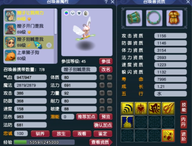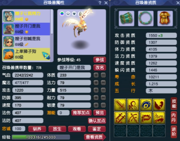今日,有位59级的梦幻西游玩家发来投稿。按照他的话说,自己这个号虽然实力不强,但输出能力足以比肩69级水平,平时在擂台上也能和69级的普通玩家打得有来有回。那么,支撑他说这话的理由是什么呢?下面,就让猪队长带大家去看看吧! 人物装备展示 衣服部分为60级初防125,单加19点魔力的简易铠甲。就加成来说,放在60级的装备中很不错,但要是和70简易比起来,初防要差上一些。 武器部分为60级295伤,耐魔双加22的简易武器,镶嵌了6锻太阳石,算是一把颇为不错的任务武器。 头盔部分为50级炎魔神,镶嵌了5锻月亮石,属于任务套装的范畴。 腰带位置为50级炎魔神,镶嵌了5锻光芒石,也是一件任务装备。 鞋子位置为50级炎魔神,镶嵌了5锻黑宝石,还是一件任务装备。 项链部分为70级总灵170的无级别项链,镶嵌了10锻舍利子,确实比一般69法系的项链高。 召唤兽展示 第一只召唤兽为7技能高伤天兵,攻击资质相当给力。 第二只召唤兽为8技能血攻雷鸟人,输出能力非常不错。 第三只召唤兽为5技能高魔须弥,平时拿它刷任务没毛病。 小结 就装备配置和属性来说,这个魔方寸平时刷个任务,确实能跟上69级的玩家,但说PK能打过69的话,应该是切了耐属性,靠宝宝冲刺赢下来的。当然,大家也别觉得这个号的造价低,这样的配置放在【白云山】服务器,刷个日常任务还是很猛的!不知道各位小伙伴觉得,这位角色的配置可以打几分呢? 叶子猪梦幻西游玩家群:1群 325703083 (2000人),2群: 330102322 (千人);3群: 424986787 (游戏疑难解答);4群: 330518295 (商人物价);5群: 1063086037 (疑难解答);6群: 1045753197 (春心萌动);7群: 787195090 (活跃互动);8群: 720665628 (全民PK)