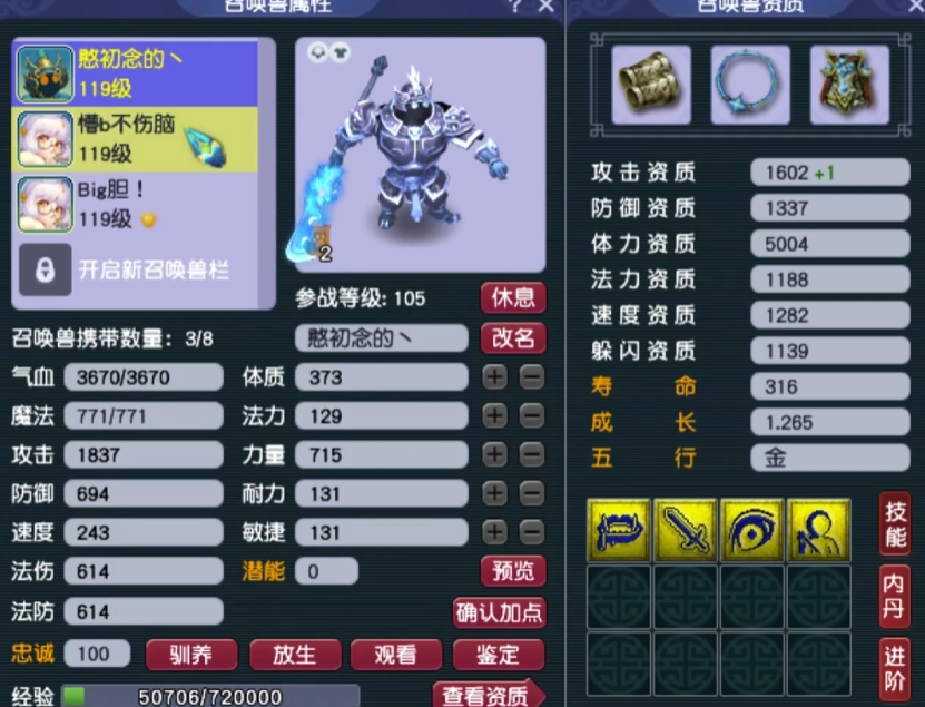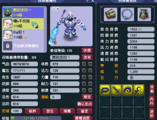 对于大多数小伙伴来说,可以随时随地切经脉无底洞是一个非常适合杀天地、刷任务的门派。这不,今天就有位小伙伴晒出了一个无符12322点气血,打符后可以轻松通关5X天地的难度配置。下面。就给大家展示一下吧! 一、人物装备展示 武器部分为100级397伤,耐敏双加42的专用,镶嵌了5锻太阳石,属性还算不错。 衣服部分为100级总防324,耐敏双加45的雾中仙,镶嵌了10锻月亮石,有增加防御的作用。 发簪部分为80级罗汉、雾中仙,镶嵌了8锻月亮石,有增加抗性的作用。 腰带位置为70级易修理、愤怒,镶嵌了7锻黑宝石,有提升速度的作用。 项链位置为70级总灵90的凝心诀,能起到回蓝的作用,性价比非常高。 鞋子位置为70级晶清、雾中仙,镶嵌了7锻黑宝石,任务用它的确可以。 二、灵饰展示 该玩家前排灵饰为4治疗,后排灵饰为2气血、2防御、1法防。这套配置不仅能提升治疗能力,还有增加抗性的作用。除此之外,他还专门镶嵌了4-5级“回春之术”来提升治疗能力。 三、召唤兽展示 第一只召唤兽为4技能血攻变异鬼将,任务用它非常舒服。 第二只、第三只召唤兽均为4技能卡速宠,平时可以拿来顶药。 小结 总的来说,这个无底洞在没有临时的情况下,拥有12322点气血、1147点防御和509点速度,打符之后调整1-5X天地的确毫无压力。不知道各位小伙伴觉得,这个号配置可以打几分呢? 叶子猪梦幻西游玩家群:1群 325703083 (2000人),2群: 330102322 (千人);3群: 424986787 (游戏疑难解答);4群: 330518295 (商人物价);5群: 1063086037 (疑难解答);6群: 1045753197 (春心萌动);7群: 787195090 (活跃互动);8群: 720665628 (全民PK)