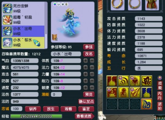 对于X9小伙伴来说,辅助神木不仅能回血、拉人,还能给团队核心输出加伤害。这不,今天就有位大佬晒出了一个拥有四件无级别特技装的顶级角色。下面,就给大家展示一下吧! 一、人物装备展示 武器部分为140级571伤,单加34耐的无级别、破甲,镶嵌了15锻太阳石,属性非常不错。 衣服部分为120级初防241的无级别、野兽、猫灵,镶嵌了17锻翡翠石,有增加法防的作用。 头盔部分为70级无级别、流云、猫灵,镶嵌了15锻月亮石,熔炼后总防高达230点。 腰带位置为80级晶清、愤怒、简易,镶嵌了8锻黑宝石,性价比非常高。 项链位置为130级总灵306的水清、无级别、猫灵,镶嵌了16锻舍利子。 鞋子位置为140级无级别猫灵,镶嵌了16锻黑宝石,熔炼后敏捷高达60点。 二、灵饰展示 该玩家前排灵饰为4治疗、2速度,后排灵饰为1气血、2防御、3法防。这套配置不仅能最大化提升治疗能力,还能起到增强抗性的作用。除此之外,他还专门镶嵌了7-8级“健步如飞”来提升速度。 三、召唤兽展示 第一只召唤兽为10技能净台壁垒,性价比非常高。 第二只召唤兽为6技能龟速净台,速度资质还能再降。 第三只召唤兽为10技能四赐福血攻高连,攻击资质高达1709点。 第四只、第五只召唤兽为9技能出其须弥,补刀能力非常强。 第六只召唤兽为7技能4轮天狗,输出能力还算不错。 第七只召唤兽为11技能净台壁垒,用它当开场宠毫无问题。 第八只、第九只召唤兽均为8技能净台金蝉,属性和资质还算不错。 第十只召唤兽为9技能四赐福净台、欣欣向荣,可轻松突破1万血量。 第十一、第十二只召唤兽均为8技能单法遗志须弥,非常适合单点补刀。 小结 总的来说,这个辅助神木在有临时的情况下,拥有10489点气血、1812点防御、850点速度和1405点法防。单就属性来说,已经可以比肩109级百套玩家属性了。不知道各位小伙伴觉得,这个号的配置能打几分呢? 叶子猪梦幻西游玩家群:1群 325703083 (2000人),2群: 330102322 (千人);3群: 424986787 (游戏疑难解答);4群: 330518295 (商人物价);5群: 1063086037 (疑难解答);6群: 1045753197 (春心萌动);7群: 787195090 (活跃互动);8群: 720665628 (全民PK)
