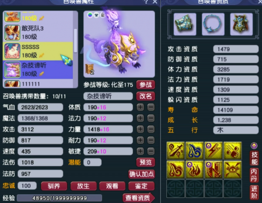 对于天元组的小伙伴来说,普陀山算是一个性价比极高的门派。可以说,这个门派只需要一套装备和两套灵饰,就能体验辅助、输出两种玩法。这不,今天就有位大佬晒出了一个特技齐全、治疗能力极强的难度普陀山配置。下面,就给大家展示一下吧! 一、人物装备展示 武器部分为160级661伤,体敏双加63的魔兽之印、不磨,镶嵌了12锻太阳石,属性非常不错。 衣服部分为150级初防268,体敏双加61的四海、不磨、画魂,镶嵌了14锻光芒石,帮战、难度用它没毛病。 发簪部分为120级晶清、修罗傀儡妖,镶嵌了12锻月亮石,有增加抗性的作用。 腰带位置为120级愤怒、碎甲、修罗傀儡妖,镶嵌了12锻黑宝石。 项链位置为80级总灵168的专注、罗汉、修罗傀儡妖,镶嵌了8锻舍利子。 鞋子位置为140级水清、不磨、修罗傀儡妖,镶嵌了12锻黑宝石,是一件非常顶级的任务神装。 二、灵饰展示 该玩家前排灵饰为4速度、2治疗,后排灵饰为3气血、3防御。这套配置不仅能提升面板速度和治疗能力,还能起到增强抗性的作用。除此之外,他还专门镶嵌了6级“健步如飞”来提升速度。 三、召唤兽展示 第一只召唤兽为10技能四赐福合纵耐连,攻防双资均在1650以上。 第二只召唤兽为6技能感知高敏须弥,速度资质高达1552点。 第三只召唤兽为9技能四赐福合纵高连,攻击力高达3017点。 第四只召唤兽为7技能血攻高连,攻击资质高达1767点。 第五只召唤兽为5技能守尸须弥,速度属性只有25点。 第六只召唤兽为8技能7轮攻谛听,非常有想法。 第七只召唤兽为7技能超千速净台,速度属性高达1850点。 第八只召唤兽为6技能血攻高连,具有一定的功能性。 第九只召唤兽为7技能龟速净台,速度属性只有19点。 第十只召唤兽为4技能法防龙龟,打难度非常好用。 小结 总的来说,这个普陀山在没有临时的情况下,拥有12127点气血、2261点防御、1267点速度和1082点法防。单就属性来说,足以通刷一切难度任务了。不知道各位小伙伴觉得,这个号的配置能打几分呢? 叶子猪梦幻西游玩家群:1群 325703083 (2000人),2群: 330102322 (千人);3群: 424986787 (游戏疑难解答);4群: 330518295 (商人物价);5群: 1063086037 (疑难解答);6群: 1045753197 (春心萌动);7群: 787195090 (活跃互动);8群: 720665628 (全民PK)