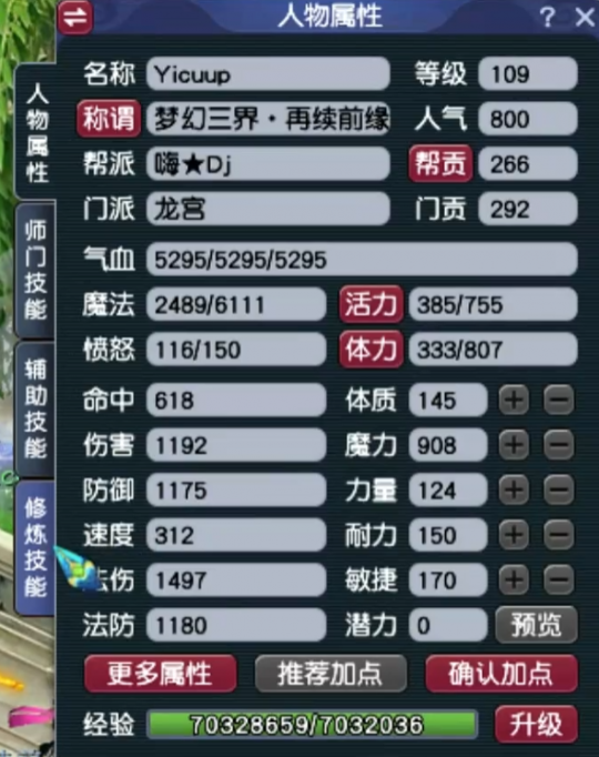 对于大多数喜欢刷任务的小伙伴来说,龙宫算是一个挂机体验非常好的门派。这不,今天就有位小伙伴耗资1.39W,拿下了一个百套、底子好、有全红召唤兽的龙宫。下面,就给大家展示一下吧! 一、人物装备展示 武器部分为100级体魔双加39的环圈,镶嵌了10锻太阳石伤害486,属性非常不错。 衣服部分为100级初防194,耐魔双加37的破甲、灵符女娲,镶嵌了10锻舍利子,有提升输出的作用。 头盔部分为100级灵符女娲,镶嵌了10锻月亮石,有提升抗性的作用。 腰带位置为100级光辉、灵符女娲,镶嵌了10锻光芒石,有增加血量的作用。 项链位置为100级总灵223的灵符女娲,镶嵌了10锻舍利子,有提升输出的作用。 鞋子位置为100级灵符女娲,镶嵌了9锻黑宝石,任务用它没毛病。 二、灵饰部分及角色细节展示 该玩家前排灵饰为2伤害、3法伤、2法暴,后排灵饰为1气血、3防御、3抗封。这套配置不仅能提升面板伤害、法伤和法暴几率,还能起到增强抗性的作用。除此之外,他还专门镶嵌了4级“血气方刚”来提升抗性。 辅助技能方面强壮高、神速高,平时刷任务毫无压力。 修炼技能方面人物三修满,召唤兽修炼满17,底子非常不错。 典藏祥瑞方面有熊猫团子,颜值还算不错。 典藏锦衣方面有水云归等。 三、召唤兽展示 第一只召唤兽为7技能高敏血攻,任务用它没毛病。 第二只召唤兽为6技能同为高连血攻,攻击资质高达1578点。 第三只召唤兽为6技能须弥,输出能力非常不错。 小结 总的来说,这个龙宫在基本没有临时的情况下,拥有5295点气血、1175点防御、312点速度和1497点法伤。单就属性来说,的确是一个非常不错的任务号,不知道各位小伙伴觉得,这个角色的配置可以打几分呢? 叶子猪梦幻西游玩家群:1群 325703083 (2000人),2群: 330102322 (千人);3群: 424986787 (游戏疑难解答);4群: 330518295 (商人物价);5群: 1063086037 (疑难解答);6群: 1045753197 (春心萌动);7群: 787195090 (活跃互动);8群: 720665628 (全民PK)