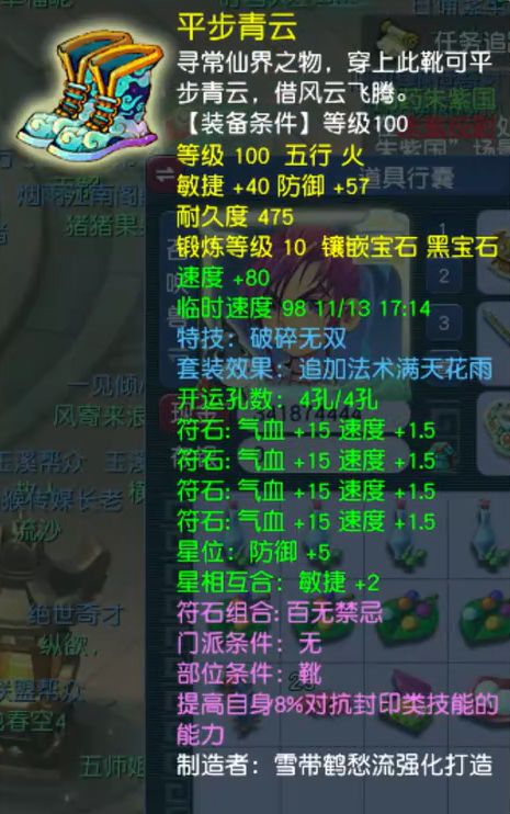 在近日梦幻西游【畅玩服-龙拳】的新手比武大会上,旭旭宝宝团队表现抢眼,不仅成功夺得神威组状元,更实现了三连冠的佳绩。宝哥的大唐官府在比赛中展现出无与伦比的物理输出,令观众纷纷拍手称赞。想必不少玩家都对宝哥的装备配置充满好奇,今天小生就带大家一探究竟! 一、人物属性 大唐带PK装备的打符面板,具备6180点气血、1766点伤害、1365点防御以及549点速度。攻守兼备的加点方式,可击溃任何阵容。 二、装备展示 100级初总伤为631且力体双加42的专用剑,镶嵌10锻玛瑙后的综合伤害是742,这就是传说中的畅玩服第一100级武器!神剑出鞘,谁与争锋? 100级愤怒腰带,气血222、防御64,打了10锻黑宝石。愤怒特效属于PK人眼中的完美蓝字,满天套也是大唐的最完美套装。 100级破血满天男头,初防高达73点,镶嵌10锻红玛瑙。破血的效果是对同一目标连续发动两次普通攻击,可用于清宠或点杀。 100级野兽满天项链,原始灵力149,10锻总灵209。开局给自己加个野兽,瞬间化身斩敌无数的战神。 100级初防218且力敏双加32的满天铠甲,打10锻月亮石总防338。这不仅具备非专用极限防御,更凑齐了5件满天套装。 100级满天破碎鞋子,敏捷40、防御57,镶嵌10锻黑宝石。破碎可造成对方一次物理伤害并削减等量蓝量,比较克制脆皮单位。 三、召唤兽一览 第一只召唤兽为12技能全红吸血鬼,攻防双资都特别完美,有点抗揍。 第二只召唤兽为8技能血宠,用来配合团队法系的速度。 第三只召唤兽为12技能壁垒吸血鬼,血攻加点用来针对隐身单位。 第四只召唤兽为12技能吸血鬼,四吸收技能都到位,非常针对敌方的法宠。 第五只召唤兽为7技能死亡吸血鬼,可起到百分百破保护的作用。 第六只召唤兽为11技能壁垒吸血鬼,成长1.287非常高。 第七只召唤兽为4技能变异净瓶女娲,资质完美的高速血宠。 第八只召唤兽为4技能血法鼠先锋,点谁谁难受。 第九只召唤兽为翻页龟速宠,速度还有一定的下降空间。 以上就是宝哥大唐的主要硬件,实力之强有目共睹,由此可见,龙拳第一大唐实至名归! 叶子猪梦幻西游玩家群:1群 325703083 (2000人),2群: 330102322 (千人);3群: 424986787 (游戏疑难解答);4群: 330518295 (商人物价);5群: 1063086037 (疑难解答);6群: 1045753197 (春心萌动);7群: 787195090 (活跃互动);8群: 720665628 (全民PK)