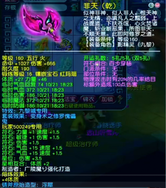 在梦幻西游第232届武神坛决赛中,新晋冠军【苏堤春晓】发挥神勇,再度击败宿敌【钓鱼岛】,成功卫冕,创下傲人佳绩!回顾整个系列赛,【苏堤春晓】的九黎城输出极为暴力,其亮眼表现给观众留下了深刻印象。接下来,就让我们一起领略他的超凡硬实力。 一、属性展示 老板九黎城的武神坛全力加点属性,具备9583血、4612伤以及1054速。尽管抗性十分脆皮,但输出最对顶尖,突出一个暴力就完事了。 160级初总伤为875且力体双加77的左斧,镶嵌16锻玛瑙后的综合伤害为1067点。这属性在非专用里是顶尖水准,唯有专用神器才能超越。 150级初总伤为860且加41力量的神佑右斧,镶嵌15锻玛瑙后的综合伤害为1017点。整体物伤中规中矩,核心是保命蓝字神佑,可提升容错率。 160级精致物暴几率1.14%的发钗,镶嵌17锻红玛瑙。极致的属性令九黎城的物理输出能做到最大化。 160级流云物暴几率1.01%的项链,16锻舍利子+熔炼总灵333。流云可帮队友加速度,是抢夺一速的核心特技之一。 160级腰带熔炼后气血390、防御107,打了16锻黑宝石。这件装备不仅起到抢速度的作用,更能提升物暴几率1.2%! 还有一条备用的穿刺愤怒腰带,用来搭配特技的时候,可以派上用场。 160级破甲穿刺0.8%的鞋子,熔炼后敏捷65、防御100。破甲术配合奇袭玉魄堪称完美组合,对手逐个单位都降低防御后,就是九黎双斧的天下。 二、灵饰&玉魄展示 七伤害的前排灵饰。戒指上排伤害28国标,下排伤害共51爆9;耳饰上排法伤歪了,下排伤害共54爆12。 六抗封的后排灵饰。手镯上排抗封42满属性,下排抗封共100爆16;佩饰上排速度29爆9,下排抗封共105爆21。 灵饰套装选用8级健步如飞,可增加大量的速度。坊间玩家常说,速度越快能压制对手,也是变向提升输出的一种手段。 前排的玉魄是三伤害,后排的玉魄是双防御一气血带2.1%奇袭法术,都镶嵌了12级五色灵尘。 三、召唤兽展示 14技能神马隐攻魔化童子,打了两本超级兽诀,能有效限制敌方的谛听。 12技能观照须弥谛听,携带了两个超级技能,配合战笛输出毁天灭地。 11技能观照须弥谛听,自带抗封技能可保证出手,毕竟功夫再高也怕被封。 10技能观照须弥谛听,带了7个轮子输出很爆炸。 12技能净台神马善恶魔童,攻防双资炸裂,可用于开场。 10技能净台神马死亡法防童子,一般用于配速卡血。 又一只10技能净台神马死亡法防童子,有小法可用电魂闪特性。 9技能净台树苗死亡魔童,赐福超否定血量爆表,带高毒套装能恶心对手。 8技能净台魔童,超龟速拉人血宠。 11技能净台神马死亡法防心猿,金蝉技能在手,令PK思路十分灵活。 11技能净台死亡善恶魔童。善恶可清宠,死亡可压制九黎,两用型攻宠。 以上便是苏堤春晓九黎城的主要硬件展示!看完这套配置,你会打出怎样的分数?快来评论区亮出你的评价吧! 叶子猪梦幻西游玩家群:1群 325703083 (2000人),2群: 330102322 (千人);3群: 424986787 (游戏疑难解答);4群: 330518295 (商人物价);5群: 1063086037 (疑难解答);6群: 1045753197 (春心萌动);7群: 787195090 (活跃互动);8群: 720665628 (全民PK) [编辑:百晓生]