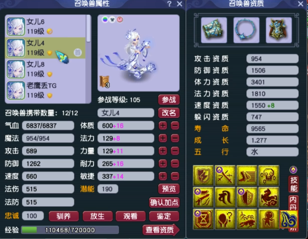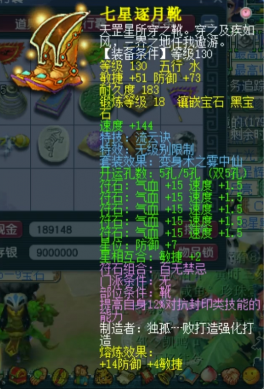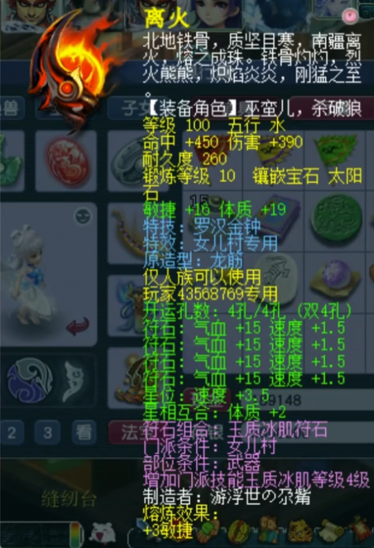 在梦幻西游的封系门派中,女儿村因为独特的奇经八脉,素有封系一姐的名号。今天,小生给大家展示神威大佬的女儿村硬件,看看他的实力到底有多顶尖。 一、属性展示 这是女儿村的PK面板属性,由于没有加点和打符,完成体属性会更加炸裂。 二、装备展示 140级无级别愤怒腰带,熔炼后气血368、防御100。愤怒+无级别的组合堪称腰带届神仙级“套餐”,大佬还给它打上了19锻黑宝石,可以把它看成入门级服战号的实力! 130级无级别金刚怒目项链,17锻+熔炼总灵301。作为合格的一速封系,为队友及时输送愤怒值,属于基本操作。 100级罗汉宝珠(原造型鞭子),原始伤害310点、体敏双加38。这是身上唯一大特技,能够有效限制敌方法系单位的发挥。 130级无级别流云诀鞋子,熔炼后敏捷55、防御87,镶嵌18锻黑宝石。流云的作用是提升速度属性,有利于抢夺一速。 110级无级别笑里藏刀发钗,17锻月亮石+熔炼总防283。仅次于五孔的无级别特技硬件,熟练掌控对手的愤怒值,就能影响比赛的走向。 150级无级别女衣,熔炼后敏体双加50,18锻月亮石+熔炼总防511。抗性拉到极致,携带此战衣打PK,对手感到无比绝望。 三、灵饰&玉魄展示 前排灵饰为六速度。戒指主属性防御20国标,下排速度共31爆7;耳饰上排法防21爆1,下排速度共32爆8。 后排灵饰为三法防二气血一防御。佩饰主属性速度21爆3,下排气血共200爆32、防御28爆4;手镯主属性抗封26爆6,下排法防共78爆18。 灵饰套装选用8级健步如飞,一共增加60点速度值,有利于女儿村争夺一速优势。 前排玉魄是双速度一封印,后排玉魄是双法防一气血。分别镶嵌10级、8级五色灵尘,过渡用的,后续可换带奇袭词条的玉魄。 四、召唤兽展示 第一至三只召唤兽都是配速画魂血宠,净台+神马+死亡+法防特殊技能组合,属于目前PK顶级配置。 第四只召唤兽是9技能全红画魂,拥有高级金蝉脱壳可以配合当回合的战术,拉出其他召唤兽。 第五只召唤兽是13技能净台神马善恶画魂,攻防双资都很优秀,适合当首发宠。 第六只召唤兽是超级鲲鹏,瞬击一拳的爆炸输出最为致命。 第七只召唤兽是10技能出其须弥画魂,1608法伤+瞬法收割一切残血单位。 第八只召唤兽是8技能须弥出奇涂山瞳,单一小法术的斩杀线更稳定。 第九只召唤兽是9技能净台须弥画魂,龟速血法加点常用于守尸体。 总的来说,这位女儿村大佬的硬件强悍,有多件孤品神装,更别提大佬还有诸多顶尖召唤兽。你们觉得这个号能否问鼎神威第一女儿?欢迎在评论区留言分享~ 叶子猪梦幻西游玩家群:1群 325703083 (2000人),2群: 330102322 (千人);3群: 424986787 (游戏疑难解答);4群: 330518295 (商人物价);5群: 1063086037 (疑难解答);6群: 1045753197 (春心萌动);7群: 787195090 (活跃互动);8群: 720665628 (全民PK) [编辑:百晓生]