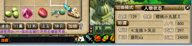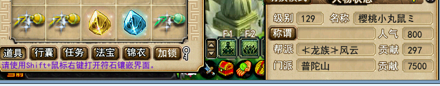 我说妹子怎么门贡那么多呢,原来每天都刷六轮师门的,那么,想必要花环什么的都直接给了,看看后面的成就图,应该是的了,强大!祝愿这点奖励能摆脱“坑”这个字!