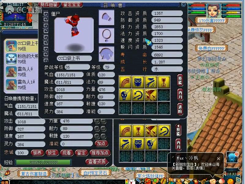 1.287成长,放服战级别的宠也够用了吧,神级隐功居然是僵尸,35参战宠有这样的成长,不知道炼妖过多少回,不过还是那句老话,请还给39!!