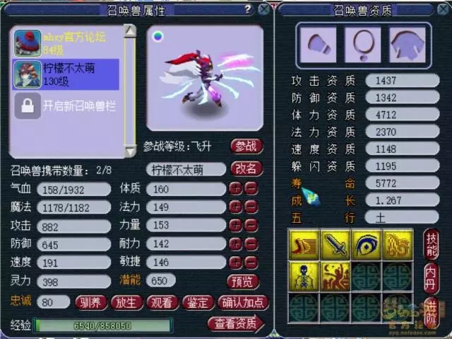 先来看我们今天的主角,6技能夜罗刹,攻资1437,防资1342,体资4712,成长1.267。它的各项资质和成长都不错,并且夜罗刹这个造型非常帅,老板想都不想直接红书走起。