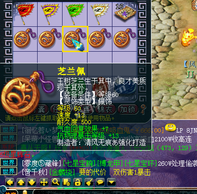 来5个60配饰 猜一猜 能出多少条属性 就是下面2排3排的 这个应该容易猜吧 完了再插播几个150武器 你们猜猜能出蓝字么 来 这次猜中送你100点