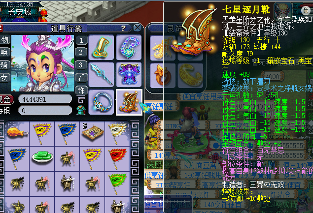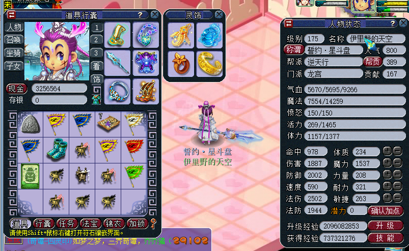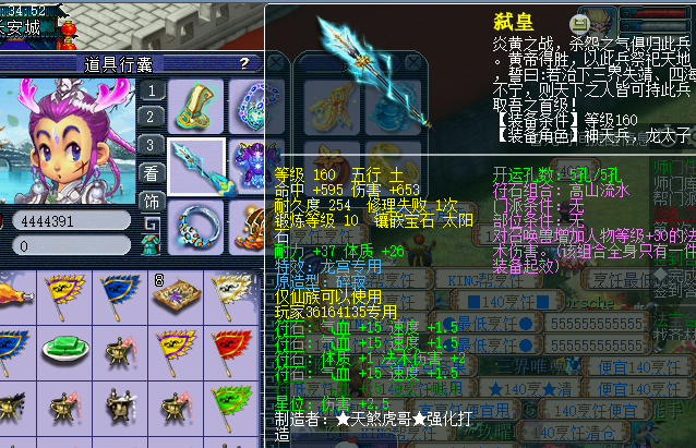任性玩家秒了个号,但是不懂物价的他也是懵逼的,于是他说,“请帮我估下价,13段化圣4大龙5W7贵不贵,历史门派是天宫,机缘、强壮全满 (神速27级),属性2500法伤 2000防御 9000+血,12项链 13衣服 12头。 灵饰有两套法爆或者法伤都可以带 看你自己选择 另外!还带两套任务装备 130定心套5件 和 80魔力套3件 重申一遍随时可以上架 下面发BB 百顺须弥 全红连善 全红110灵性高隐 耐法龟速 还有几只血卡龙龟 足以应付日常帮战 这样的号还行吧”