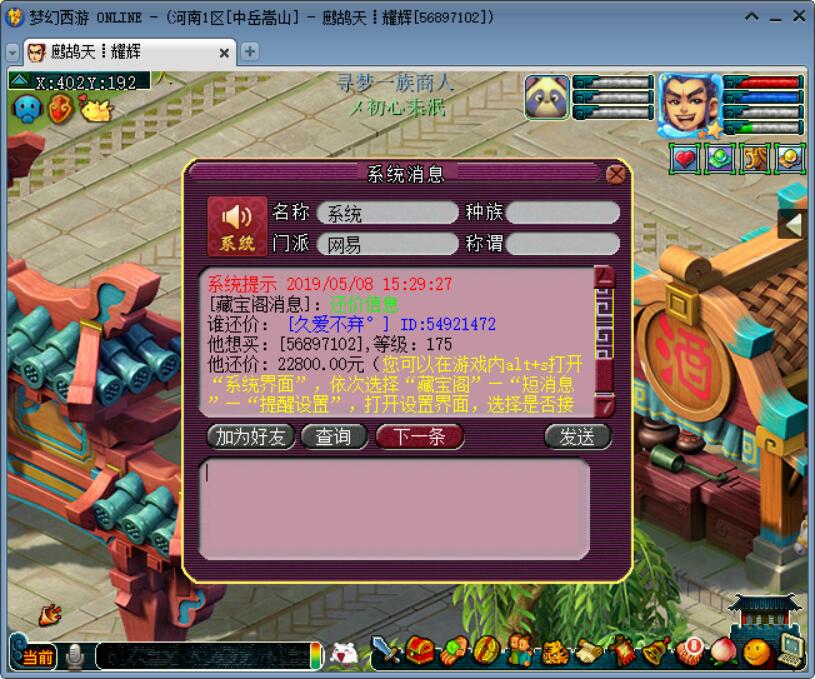龙宫作为曾经的法系一哥,自从门派调整后,服战地位大不如前,因此导致龙宫号的价格持续走低。这不,有个追梦玩家直播秒化5龙宫号,不过玩家则表示,看到还价心已凉了半截,下面开始直播取号! 在此之前先看看别人的还价,该号买主透露是2W35秒的,秒的过程没有思考太多,主要是看中修炼。 还价的人不多,可能与龙宫号遇冷有关,最高还价22800,笔者感觉还行,像老王那种殿堂级的主播估号,也一般会有5%的价格差。 果然不出所料,老板买的空号,话说前主人也清的够干净的,只留下一个80系统送的戒指,当从属性上来说,并没什么亮点,充其量也是几百万的货。 九霄幽凰虽说是限量飞行祥瑞,不过不加钱。没有酒肆,有巫医,锦衣只有一套不加钱。 仓库阵亡,毛都没剩下 副本积分也不幸阵亡 百晓积分也没... 神器积分98,离最低档的强化石奖励还差一大半 想请教下猪友,现阶段的龙宫经脉应该怎么点呢?第四层点龙慑好还是傲翔好? 卖家说主要看中的是宠修,现在的环太贵了,部分服务器60级武器都去到23W以上,而且跑宝宝环太费时间,直接买个现成的。 化圣号的技能就不解释了,至于经验方面,卖家说只有300多亿,看来后面的路还很长 没装备,没宝宝做师门会不会死啊? 唯一能找回少许安慰的是,还有1000点仙玉可以免费兑换,不过这要换到何年何月啊? 笔者看完后表示,现在虽说龙宫号价格下滑,不过这个号底子还是很不错的,而且买家透露,之前是凌波城转的,自从4月份门派调整后,凌波城再次加强,买家不妨等化9后再转回凌波城。 叶子猪梦幻西游玩家群:1群 325703083 (2000人),2群: 330102322 (千人);3群: 424986787 (游戏疑难解答);4群: 330518295 (商人物价);5群: 1063086037 (疑难解答);6群: 1045753197 (春心萌动);7群: 787195090 (活跃互动);8群: 720665628 (全民PK)