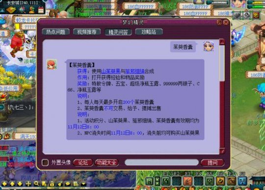 游戏中,重阳节活动已经结束,相信大家都在活动中收获颇丰。但活动结束并不意味着奖励结束,我们还有很多茱萸香囊可以开。这个物品奖励非常丰厚,其中包含了特赦令牌、五宝、超级净瓶玉露、净瓶玉露、超级金柳露、999999两银子。 ![]() 大家都知道,合成茱萸香囊所需要的山茱萸果在NPC重九老人处就可以购买,驱邪细绢在活动中就可以获得,当然在玩家处也可购买。 ![]() 将山茱萸果和驱邪细绢合成,就可以获得茱萸香囊。我们今天的主角已经开始在操作了。 ![]() 200个茱萸香囊终于合完了,玩家身上一共是932w,看看这200个茱萸香囊到底能开出多少惊喜? ![]() 第1组的30个几乎全阵亡了,只开出1个超级净瓶玉露。玩家表示,他不是来拿经验的,要的是物品奖励。 ![]() 下面那20个就开出1个净瓶玉露,这50个绝对是血亏。而且玩家只有69级,这经验更是少得可怜,希望后面的150个可以逆袭下。 ![]() 第3组开了13个就获得了2个超级金柳露、超级净瓶玉露1个和净瓶玉露1个,玩家表示,要是一直这么得东西该多好。 ![]() 另外的17个开出1个龙鳞、1个超级净瓶玉露、1个超级金柳露、1个钱。这30个开的比较不错。 ![]() 第4组开出1个钱、1个超级金柳露、1个超级净瓶玉露,到目前为止别说特赦令牌了,连个大五宝都没见到,怕是要凉啊。 ![]() 第5组开了26个共获得净瓶玉露3个、超级金柳露1个、超级净瓶玉露1个,身上背包满了,只能回仓库放放。小伙伴们要是准备开茱萸香囊,最好把身上背包清空,然后站在仓库管理员旁边,这样可以方便存物品。 ![]() 剩下的4个都是经验,又不得物品奖励了。 ![]() 第6组就获得了1个超级金柳露,这组更惨,玩家直呼想哭。 ![]() 第7组开了17个获得避水珠1个、超级金柳露1个、超级净瓶玉露1个、净瓶玉露1个,还剩最后的13个,不知道会什么样。 最后的13个开出净瓶玉露1个、超级净瓶玉露1个、超级金柳露1个。 不知道你们发现了没,这位玩家1个大五宝、特赦令牌都没得到,运气不是一般的差。只能说1句,担架队呢,来,抬走下1位吧。 小伙伴们,今年的茱萸香囊你开了么,赚了or亏了? 叶子猪梦幻西游玩家群:1群 325703083 (2000人),2群: 330102322 (千人);3群: 424986787 (游戏疑难解答);4群: 330518295 (商人物价);5群: 1063086037 (疑难解答);6群: 1045753197 (春心萌动);7群: 787195090 (活跃互动);8群: 720665628 (全民PK) [编辑:小麦]