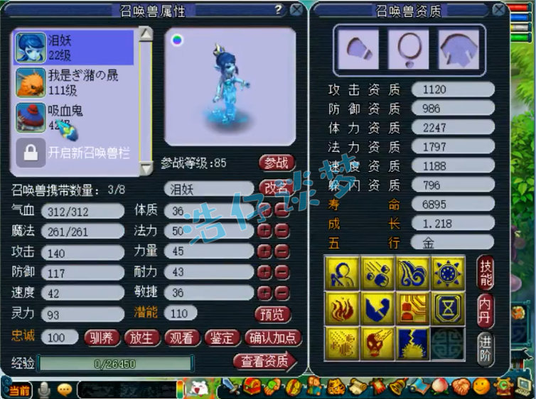 新的资料片“东海秘境”在全服上线,又引起了一波炼妖热潮,毕竟新的召唤兽造型实在是很漂亮。浩仔在区内转了一圈,基本抢不到宝箱,全被炼妖的玩家抢完了。今天浩仔给大家带来的就是久违的炼妖篇,之前我给大家整理过一篇合谛听的文章,很多玩家留言看得过瘾。经过几天的整理,终于给大家凑齐了几组谛听炼妖。浩仔带来的炼妖资源,注定不会平凡,好了,跟我一起来欣赏吧! 10组谛听炼妖大合集,副宠全部12技能,结局却“惨不忍睹”! 话不多说直接开始吧!第一组5技能观照万象谛听与12技能日游神,日游神第二页是认证的技能。 合出了日游神。 第二组和第一组同时进行,等一下一起看结果,第二组也是5技能观照万象谛听与12技能日游神。 第二组合出了谛听,来吧上结果。 第一组合出的是9技能日游神,还可以继续回炉一波。 第二组合出5技能谛听,还不带观照万象,彻底凉凉。 合出的9技能日游神找了一只3技能谛听回炉。 合出0级野生谛听,凉凉! 接下来收拾心情重新开始,6技能观照万象谛听与12技能日游神。 合出了谛听,又是好的开端。 就这?还不如超级金柳露洗的技能多啊! 接下来5技能谛听与12技能泪妖。 合出了泪妖! 7技能基本属于放生货了,因为高端炼妖看不上它。 下一组,6技能观照万象谛听与12技能吸血鬼。 又是副宠?运气太差了! 9技能吸血鬼一只。 不知道这是第几组了,6技能观照万象谛听与12技能泪妖,泪妖第二页也是认证的技能。 合出的还是泪妖,这要是同一个老板的,简直要崩溃啊! 11技能泪妖一只,还可以继续回炉一波。 找了一只6技能观照万象谛听回炉! 终于出谛听了。 7技能谛听,不带观照万象,还可以玩。 谛听与谛听回炉,求不出大海龟和野生。 4技能谛听带观照万象,不玩了。 继续高端炼妖,6技能观照万象谛听与12技能日游神。 弹成就的瞬间有点激动,仔细一看又有点尴尬,合出的竟是野生! 12技能野生谛听一只,关键还不带观照万象,用都没法用,只能做个血宠吓人用吧! 好了,上上下下10组高端谛听回炉,结局竟是这样的惨不忍睹! 不过,各位看客应该看爽了吧? 叶子猪梦幻西游玩家群:1群 325703083 (2000人),2群: 330102322 (千人);3群: 424986787 (游戏疑难解答);4群: 330518295 (商人物价);5群: 1063086037 (疑难解答);6群: 1045753197 (春心萌动);7群: 787195090 (活跃互动);8群: 720665628 (全民PK)