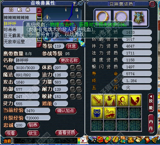 玩家离别,展示相关属性,宝宝和装备。