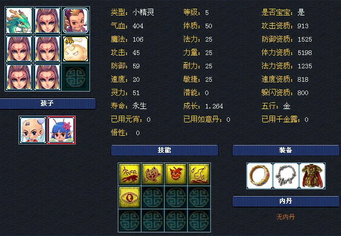 拥有160水清链子,拥有8红服战宝宝,可是修炼却没有满,这或许就是妹子不能上服战的原因。