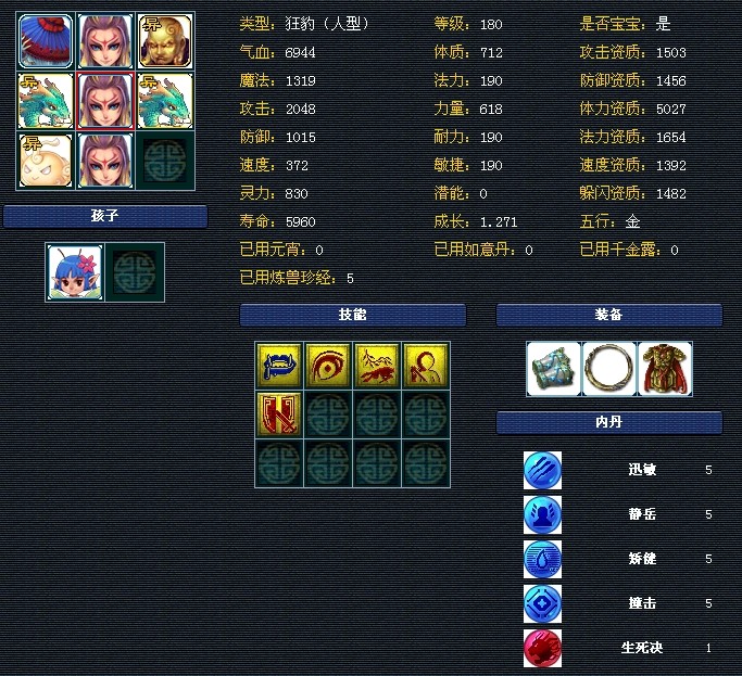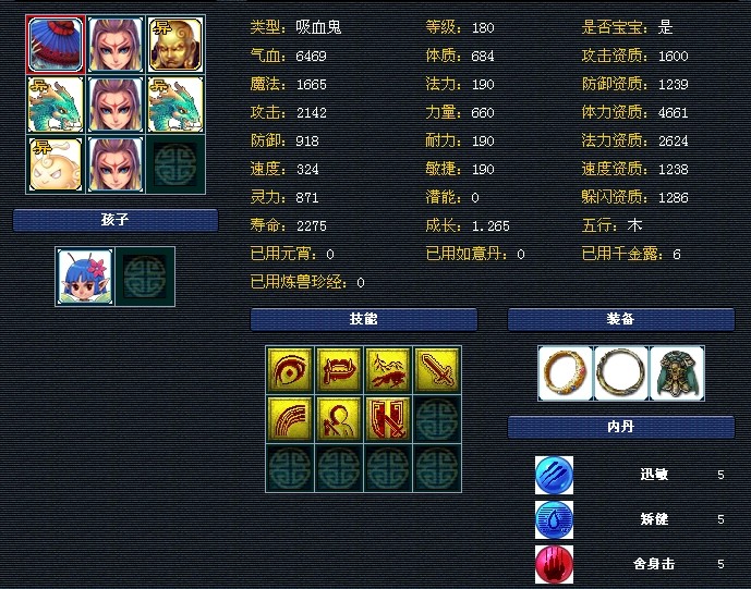 万胜府帮战普陀,全身5特技,不过宝宝可能进不去联赛帮。