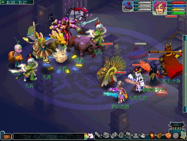 “齐天大圣”副本 任务时间:120分钟 参与等级:≥80级 参与人数:10人 “齐天大圣”副本详细介绍 自从多年前你帮助花果山众猴平定妖魔被封为王,尔后又到龙宫选定了称心如意的兵器和装备之后,花果山一派安宁祥和的景象,你占山为王,四处云游,好不自在。这日,你在傲来国游玩,遇到金毛猿,获知了花果山正在经历的一场劫难。 金毛猿告诉你,近日,花果山中的老猴相继被地府拘魂使黑白无常带走,一时人员损失惨重。而黑白无常也正在四处寻找想要带走你。你听闻此事后大怒,立即赶回花果山,正好遇到前来捉拿你的黑白无常。为了花果山的安危,一场激战由此展开…… 1环任务(任务时间:副本分为3个阶段,总共120分钟 参与级别:≥80级 参与人数:10人) 任务流程: 当团队成功组建开启后,任务开始 第一阶段:篡改生死簿(任务时间:50分钟) 找金毛猿(傲来国193,131),传送到“花果山前山”。 四处安抚“伤心的小猴”与“临死的老猴”,单人完成。 安抚完毕,黑白无常不期而至,快去会会他们。 打败黑白无常,得知生死簿的秘密,跟随他们前往“阴曹地府”。 对话崔判官,获知生死簿保存在十殿阎王手中。 与十殿阎王交战,获得生死簿,并篡改成功。本阶段任务完成。 第二阶段:官封弼马温(任务时间:20分钟) 太白金星奉旨前来招安,跟随他前往天庭。 到达天庭,挑战四大天王,并向玉皇大帝展示本领。 官封弼马温,负责看管上天神马。 从天蓬元帅处得知真相,一怒之下反下花果山。本阶段任务完成。 保护受伤的老马 找回调皮的小马 收服暴戾的骏马 第三阶段:大败天兵将(任务时间:50分钟) 玉帝大怒,命托塔天王率哪吒与巨灵神两员大将下界降服,百万天兵闯入花果山。 喝退天兵天将,并击败将领哪吒与巨灵神。 托塔天王使出七宝玲珑塔,进入塔中挑战镇塔神灵和护塔守卫。 成功逃出宝塔,天兵天将撤回天庭。自封“齐天大圣”,全副本完成。 |